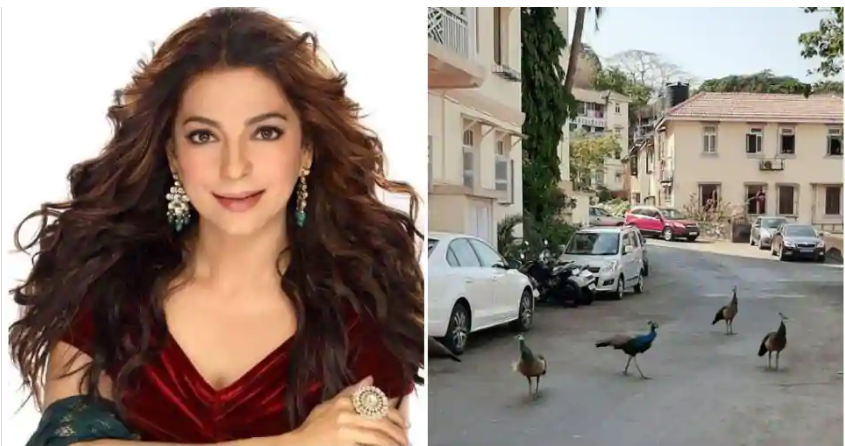 Not just rivers, even wildlife is flourishing due to the lockdown on humans. Recently, Actress Juhi Chawla had shared a few pictures of peacocks roaming around in a residential colony in suburban Mumbai. The picture, clicked at Khareghat Colony in Babulnath, showed a large numbers of beautiful birds of various colours and varieties also, roaming in the streets and sitting on people's porches.